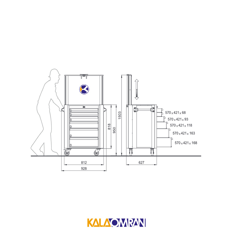 | سایر توضیحات: | - قابل استفاده در انواع محیطهای صنعتی جهت محافظت و حمل ابزارها و تجهیزات - دارای شش کشو که بالاترین آنها بعنوان قفل مرکزی کشوها عمل میکند. - دارای ریلهای ساچمهای شماره 1- سبک وزن - بدنه مشبک جهت اتصال آویزهای نگهدارنده ابزار - دو پوسته بودن سطح رو جهت افزایش استحکام و محافظت از سیستم قفل - چرخهای ترمزدار جهت تثبیت جعبه در محل دلخواه - تابلو مشبک ریلی جهت اتصال آویزهای نگهدارنده ابزار با قابلیت باز و بسته کردن - دارای سطل و طبقه با قابلیت جابجایی - دارای پریز برق و سیم جمع کن |