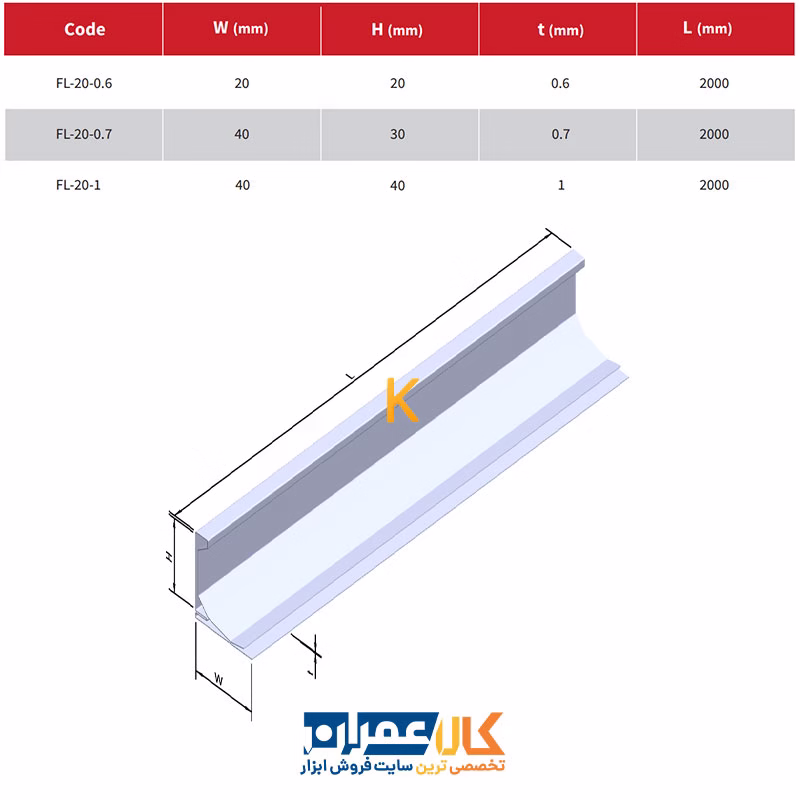 | طول پروفیل: | 20 میلی متر |