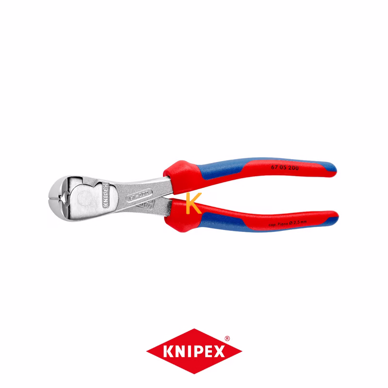 سیم چین مدل 6705200 کنیپکس، ساخت کشور آلمان، ابزاری قدرتمند و مقاوم برای برش انواع سیمها میباشد. با طول ۲۰۰ میلیمتر و وزن ۳۶۱ گرم، این انبر سیم چین طراحی شده است تا برای کارهای سنگین و حرفهای در صنایع مختلف استفاده شود. سختی لبه برش تقریباً ۶۴ HRC به این انبر این امکان را میدهد که بهراحتی سیمهای نیمه سخت تا ۳.۸ میلیمتر و سیمهای پیانو تا ۲.۵ میلیمتر را برش دهد.