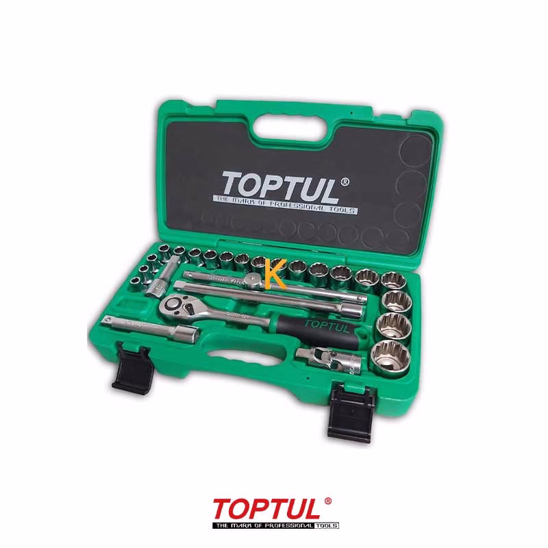 جعبه بکس 25 پارچه 1/2 اینچ مدل GCAI2505 تاپ تول یک مجموعه حرفهای و کامل برای کاربران فنی و تعمیرکاران است. این ست از برند معتبر تایوانی تاپ تول / Toptul شامل 25 قطعه، از جمله 19 بکس 12 پر در سایزهای 8 تا 32 میلیمتر و یک آچار لقلقهای با دسته جغجغهای میباشد. طراحی محکم و باکیفیت این ابزارها از فولاد مقاوم با روکش کروم براق، باعث افزایش عمر و کارایی آنها میشود. با خرید جعبه بکس 25 پارچه 1/2 اینچ مدل GCAI2505 تاپ تول، شما به یک ست کامل و کارآمد برای انجام انواع پروژههای تعمیراتی دست خواهید یافت.