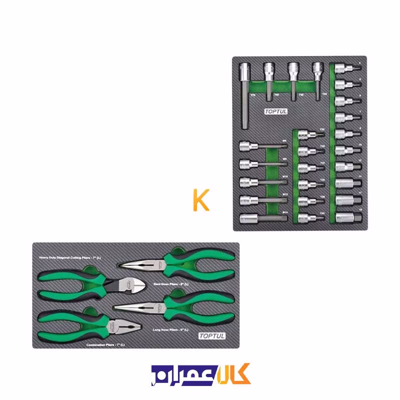 | آیتمهای کشوی پنجم: | - با کد GEA0811 - شامل 8 قلم ابزار 1 عدد چکش مهندسی 500 گرمی 4 عدد سنبه پیندار با سایزهای 3x130 - 4x150 - 5x160 - 6x180 میلیمتر 1 عدد سنبه مخروطی سایز 4x140 میلیمتری 2 عدد قلم بنایی سر تخت با سایزهای 19x180 و 25x220 میلیمتر - آیتمهای کشوی پنجم با کد GEA0407 - شامل 4 قلم ابزار 1 عدد سیم چین صنعتی سایز 7 اینچ 1 عدد انبردست سایز 7 اینچ 1 عدد دم باریک سایز 8 اینچ 1 عدد خار جمع کن سر کج سایز 8 اینچ - با کد GEA0408 - شامل 4 قلم ابزار 1 عدد خار باز کن سر کج سایز 7 اینچ 1 عدد خار باز کن سر راست سایز 7 اینچ 1 عدد خار جمع کن سر کج سایز 7 اینچ 1 عدد خار جمع کن سر راست سایز 7 اینچ |