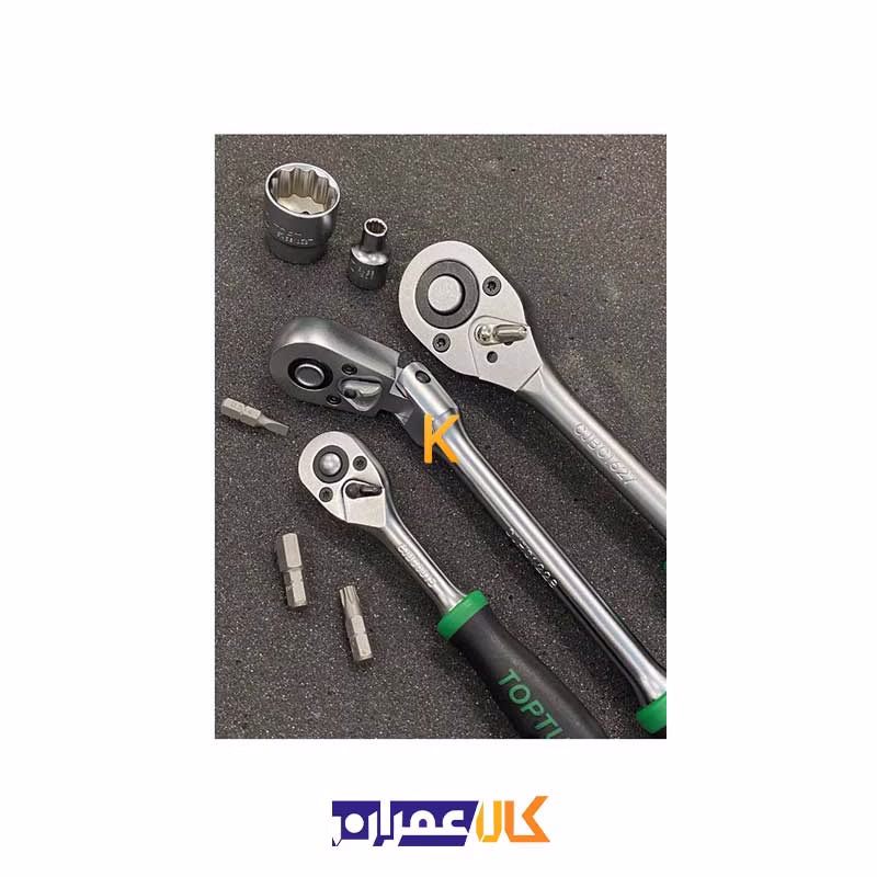 | محتویات مجموعه: | - 1. بکسها: 1/4″ درایو (6 پر): سایزهای 4 تا 10 میلیمتر 3/8″ درایو (12 پر): سایزهای 6 تا 22 میلیمتر 1/2″ درایو (6 پر): سایزهای 8 تا 32 میلیمتر بکس شمع: 16 و 21 میلیمتر بکس ستارهای (E-Type): E4 تا E20 2. آچارها: آچارهای یکسر تخت: سایزهای 6 تا 24 میلیمتر آچارهای دو سر رینگی: سایزهای 8×10، 10×12، 11×13، 12×14، 17×19 میلیمترtoptul.com 3. دستهها و رابطها: دسته جغجغهای: برای هر درایو با قابلیت چرخش معکوس و آزادسازی سریع دسته کشویی و دسته L شکل: برای درایو 1/2″ رابطهای افزایش طول: در طولهای مختلف برای هر درایو رابط انعطافپذیر: برای درایو 1/4″ مفصل یونیورسال: برای هر درایو آداپتورهای تبدیلی: بین درایوهای مختلف 4. ابزارهای دیگر: پیچگوشتیهای دوسو و چهارسو: در اندازههای مختلف پیچگوشتیهای کوتاه (Stubby): برای فضاهای محدود پیچگوشتیهای Go-Thru: برای انتقال نیرو مستقیم سریهای پیچگوشتی: شامل انواع دوسو، چهارسو، PZ، آلن، ستارهای انبر قفلی و انبردست: برای نگهداشتن و برش چکش مهندسی: 300 گرمی متر اندازهگیری: 3 متری |
