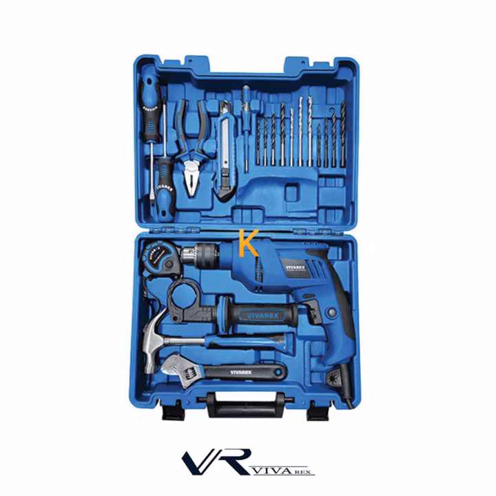 | اقلام همراه: | دریل برقی چکشی 13 میلیمتر دارای 2 عدد پیچ گوشتی دوسو و چهارسو یک عدد انبردست/یک عدد فازمتر یک عدد کاتر/یک عدد آچارفرانسه یازده عدد مته با سایزهای مختلف یک عدد چکش و یک عدد متر سه متری |